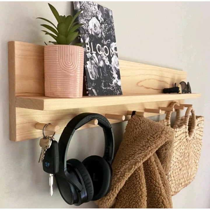 Transforme seu hall de entrada em um ambiente organizado e acolhedor com o Cabideiro de Parede Prateleira. Ideal para pendurar chaves, bolsas, casacos e pequenos acessórios, este modelo combina design moderno com a beleza natural da madeira, trazendo sofisticação e praticidade ao seu dia a dia.