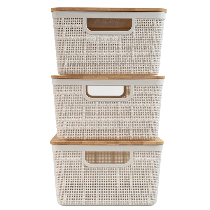 Transforme o visual da sua casa com o Kit de 3 Caixas Organizadoras com Tampa de Bambu. Com design moderno e acabamento impecável, essas caixas unem praticidade, beleza e sustentabilidade em cada detalhe.