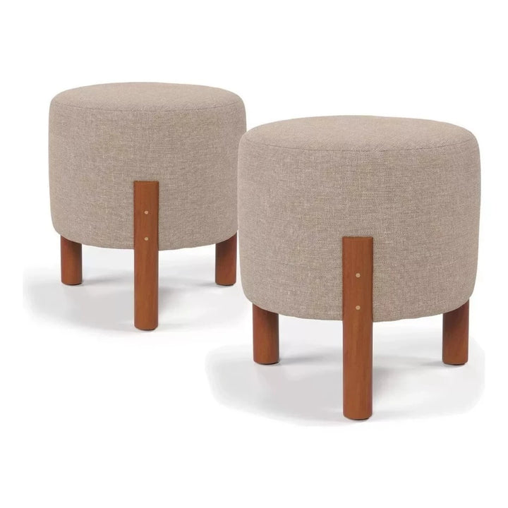 • 2 Puffs em linho luxo com pés de madeira maciça