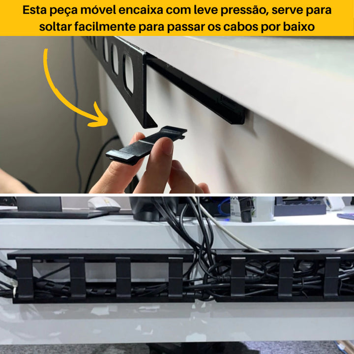 Elimine a bagunça de fios e mantenha seu ambiente organizado, seguro e visualmente limpo com o Guia de Cabos Organizador. Um item essencial para setups gamers, escritórios modernos e espaços profissionais que valorizam a estética e a funcionalidade.
