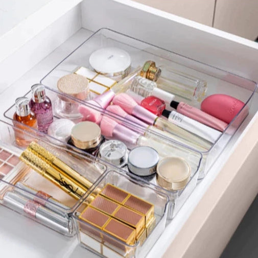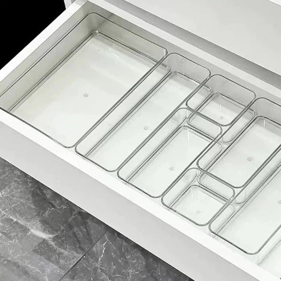 O Conjunto com 7 Organizadores Multiuso em Acrílico transforma qualquer espaço, trazendo mais funcionalidade e elegância para o seu dia a dia.