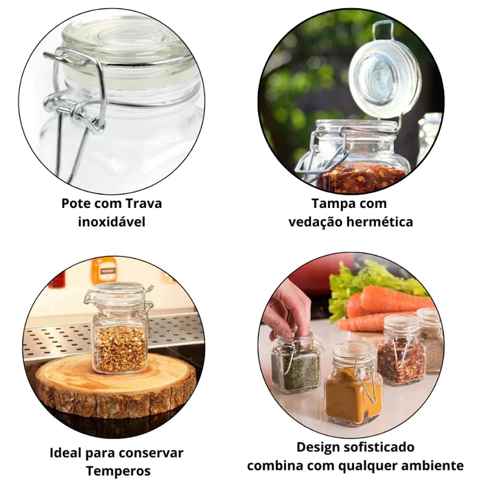 Com o Porta-Tempero de Vidro Hermético Premium, você une praticidade, durabilidade e design moderno. Ideal para organizar sua cozinha, conservar temperos e dar um toque elegante ao seu espaço culinário.